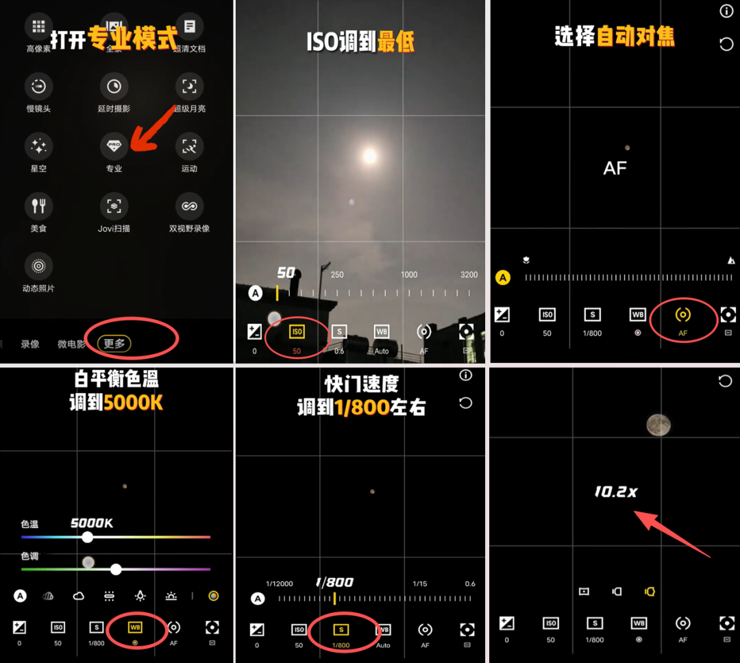 地舆位置、拍摄时辰、手机型号不同,以上参数仅供参考,具体数值可凭证现场后光条款进行休养。要是手机自带的“超等月亮”模样,参数已智能鼎新好,只需放大焦段瞄准月亮拍摄即可。