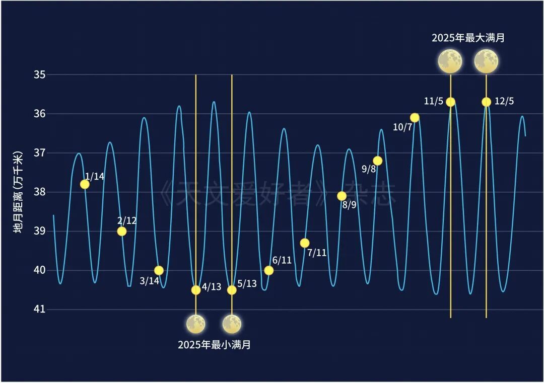 2025年最大的两次近场所朔月将发生在11月5日和12月4日。这两次近场所朔月的视直径险些王人达到了34角分。11月的“超等月亮”比12月的稍大小数。